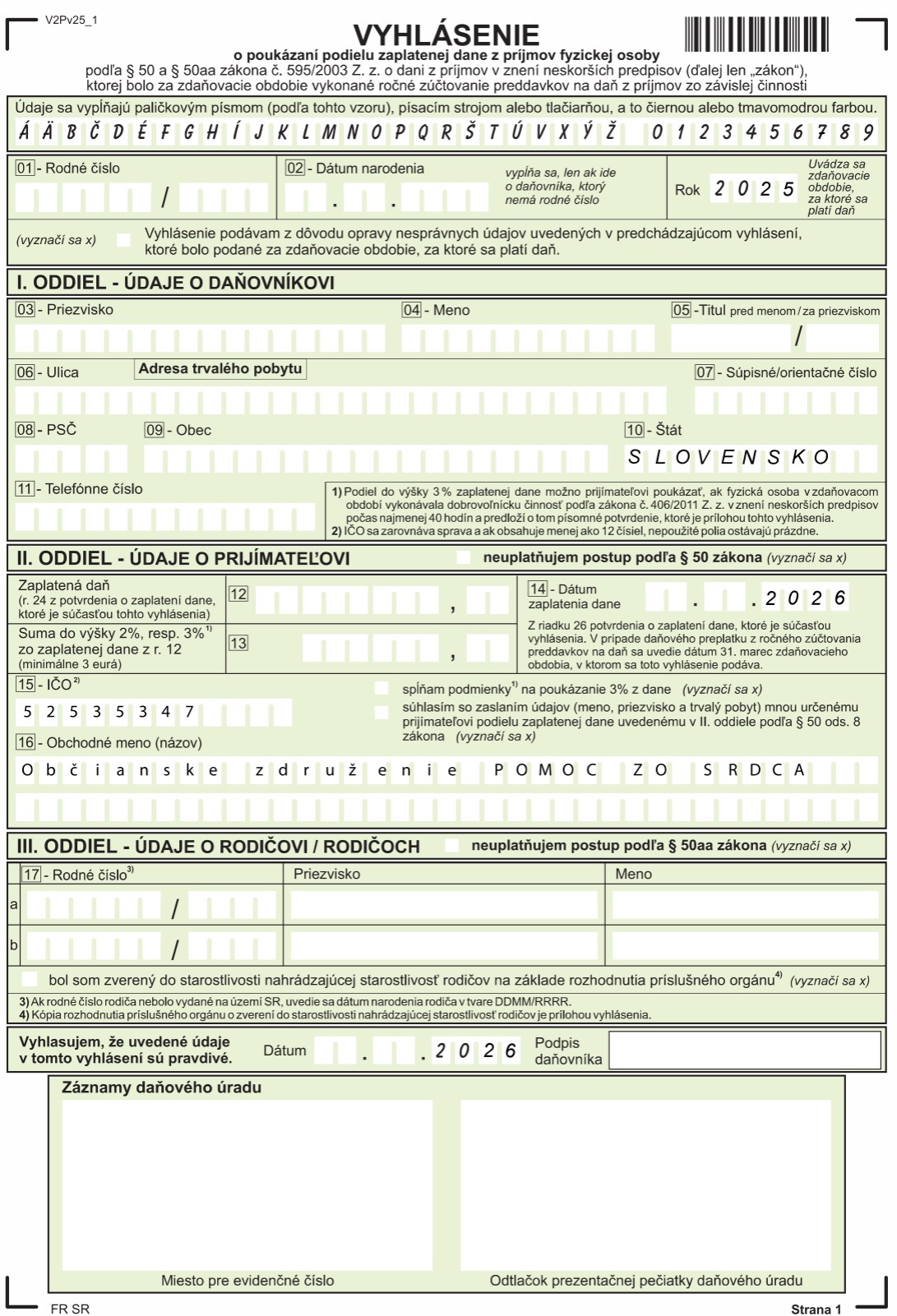 2% z daní