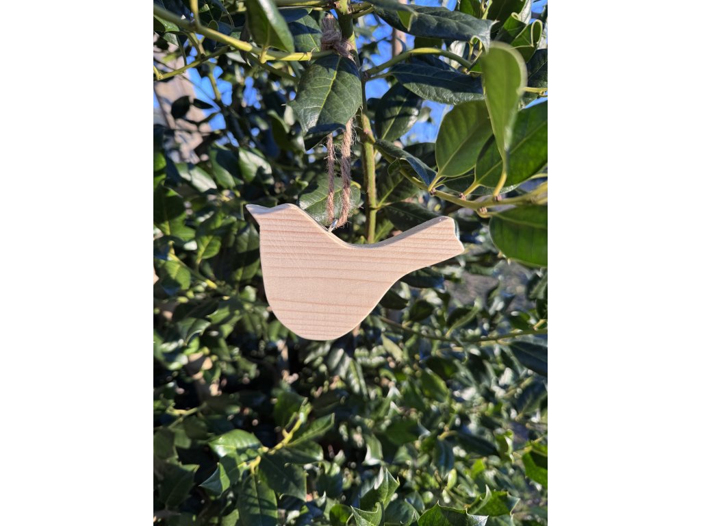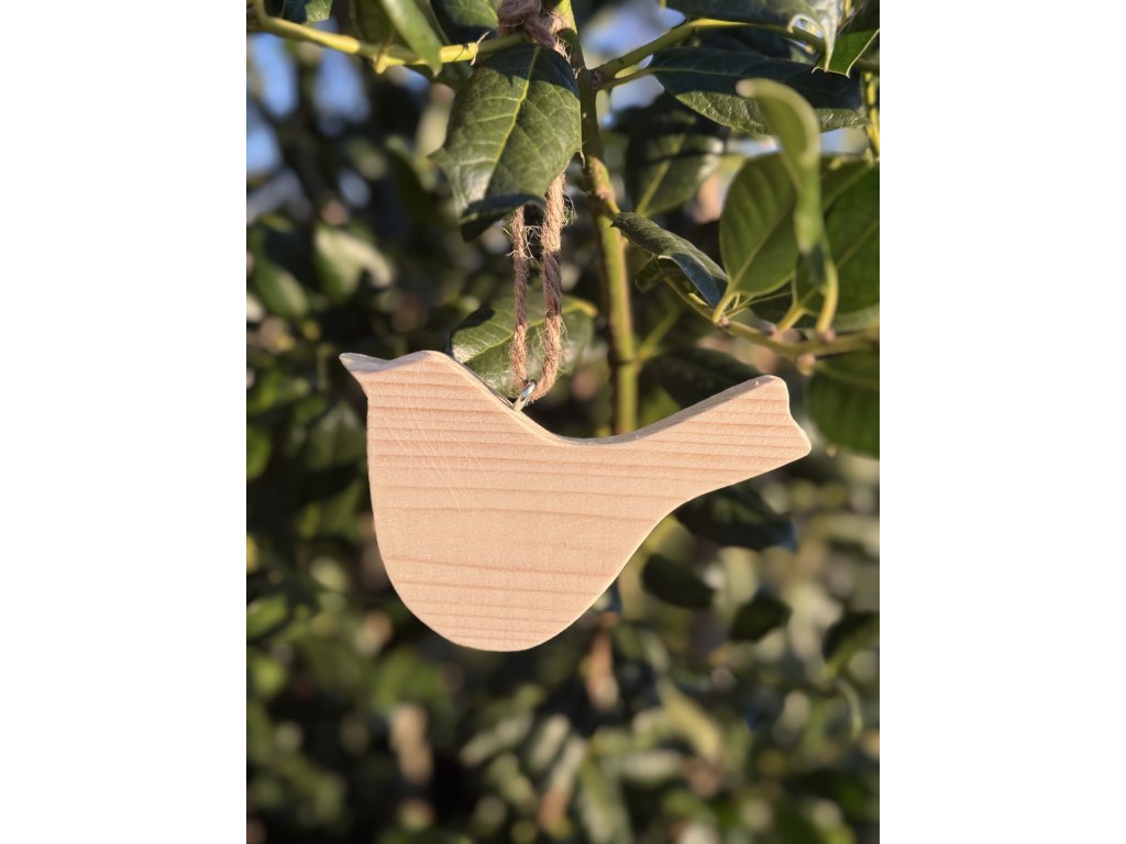 Drevený vtáčik z prírodneho dreva so špagátikom - vhodný aj na zavesnie.
