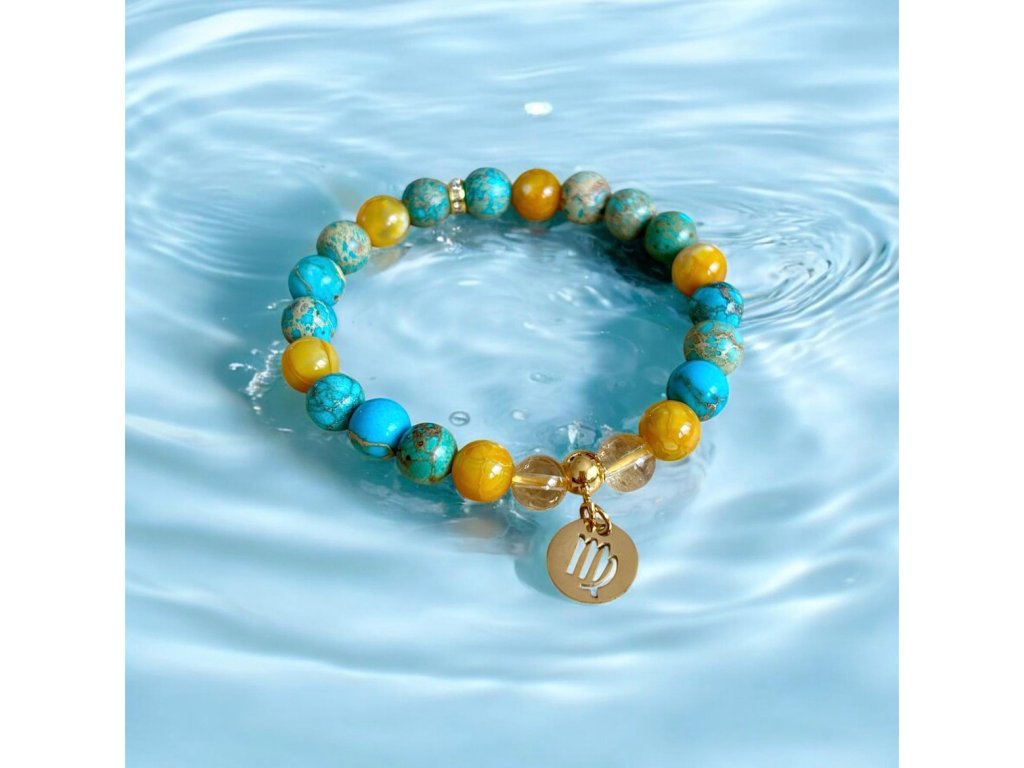 - kartička veľkosti A6 na veľmi tvrdom papieri s ilustráciou špeciálne pre toto znamenie, z druhej strany kartičky je popis kameňov, z ktorých je náramok vytvorený