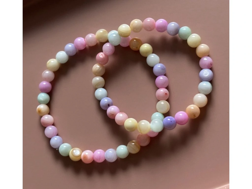 Náramok z minerálnych kameňov veľkosti 5 mm na silikónovej gumičke.