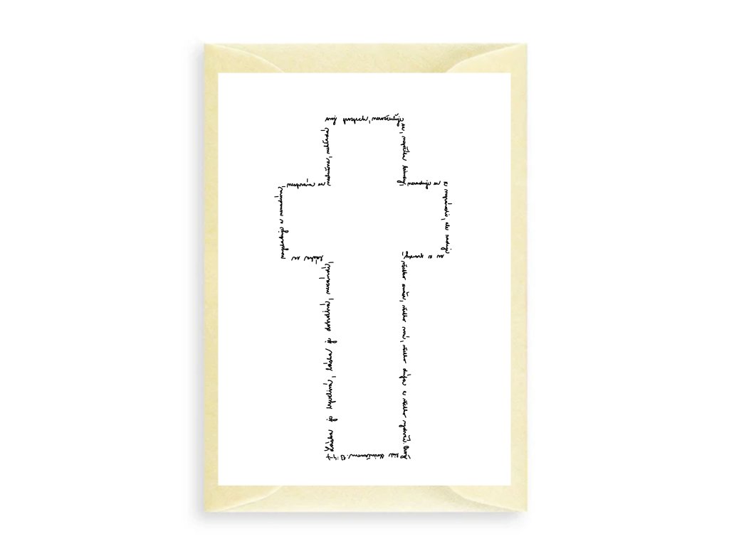 - Otváracia pohľadnica s obrázkom a textom na prednej strane.