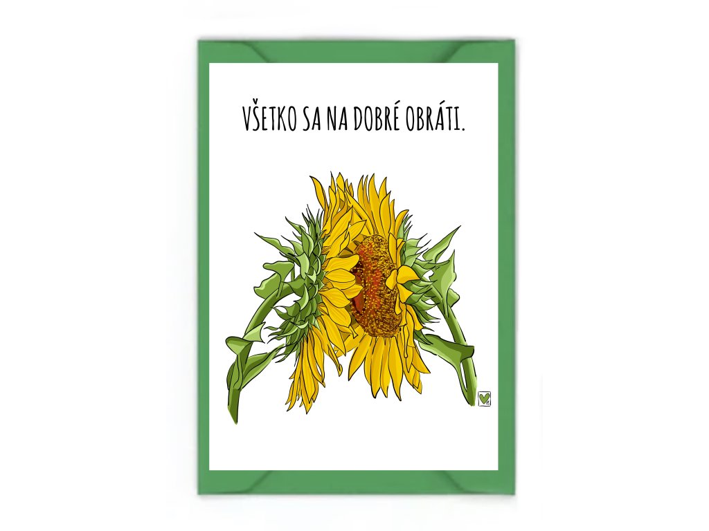 - Otváracia pohľadnica s obrázkom a textom na prednej strane.